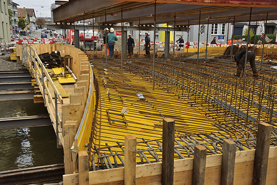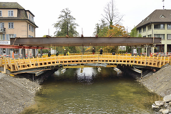 Die Brücke wird vorläufig mithilfe von Stahlträger aufgehängt