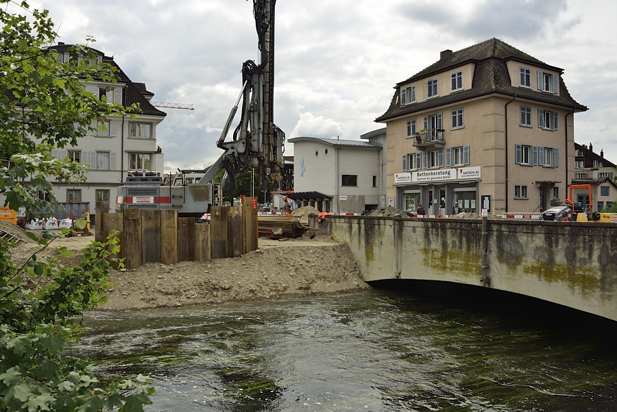 Vor dem Abbrechen und dem Bau der neuen Brücke, werden zuerst alle Werksleitungen erneuert. Stand 1. Juni 2016