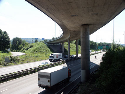 lange Viadukt vom Bahnhof Wallisellen bis zum Zwicky-Areal in Dübendorf.Diese 2 Bilder zeigen, wo der Viadukt die Autobahn A1 beim Glattzentrum überqueren, bzw.unterqueren wird.